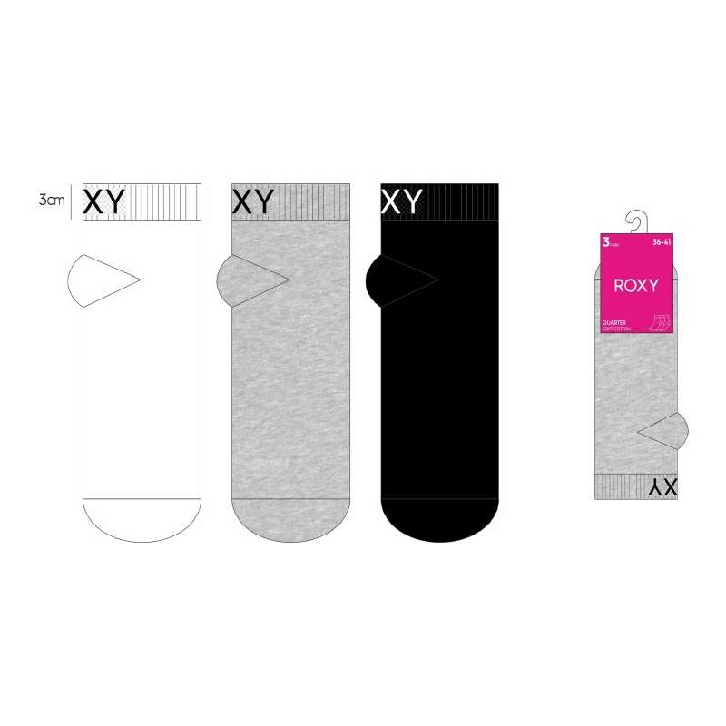 Lot de 3 paires de socquettes 2/3 Femme Assortiment NOIR / GRIS / BLANC