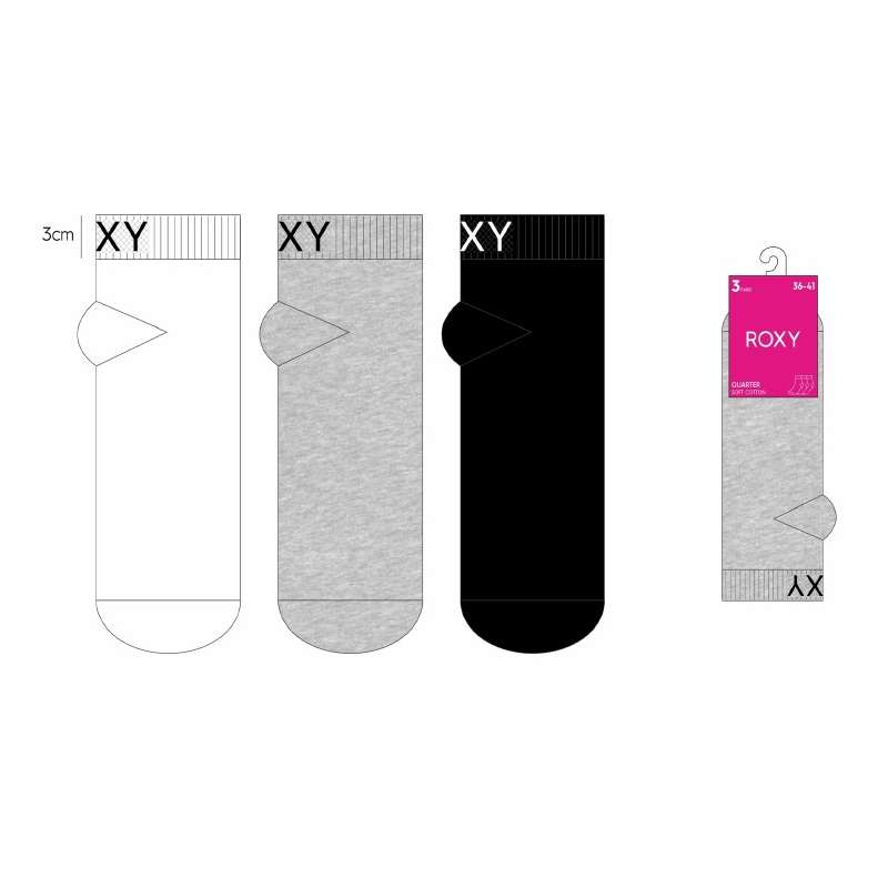 Lot de 3 paires de socquettes 2/3 Femme Assortiment NOIR / GRIS / BLANC