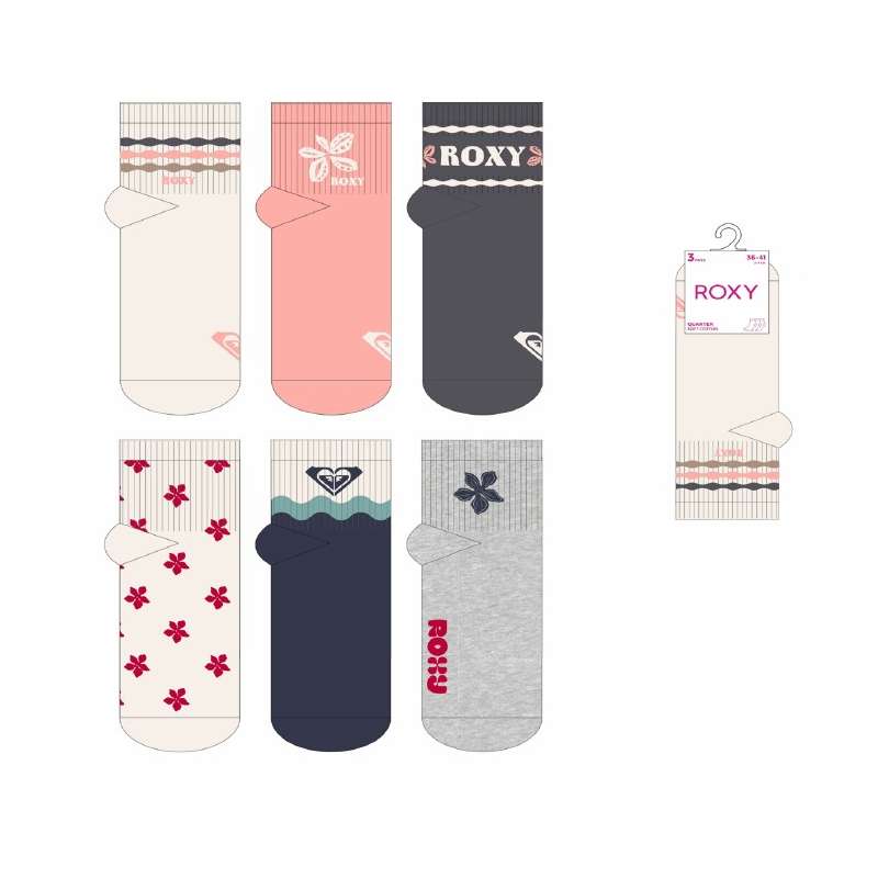 Lot de 3 paire de socquettes 2/3 Roxy, avec motifs fleurs / hibiscus