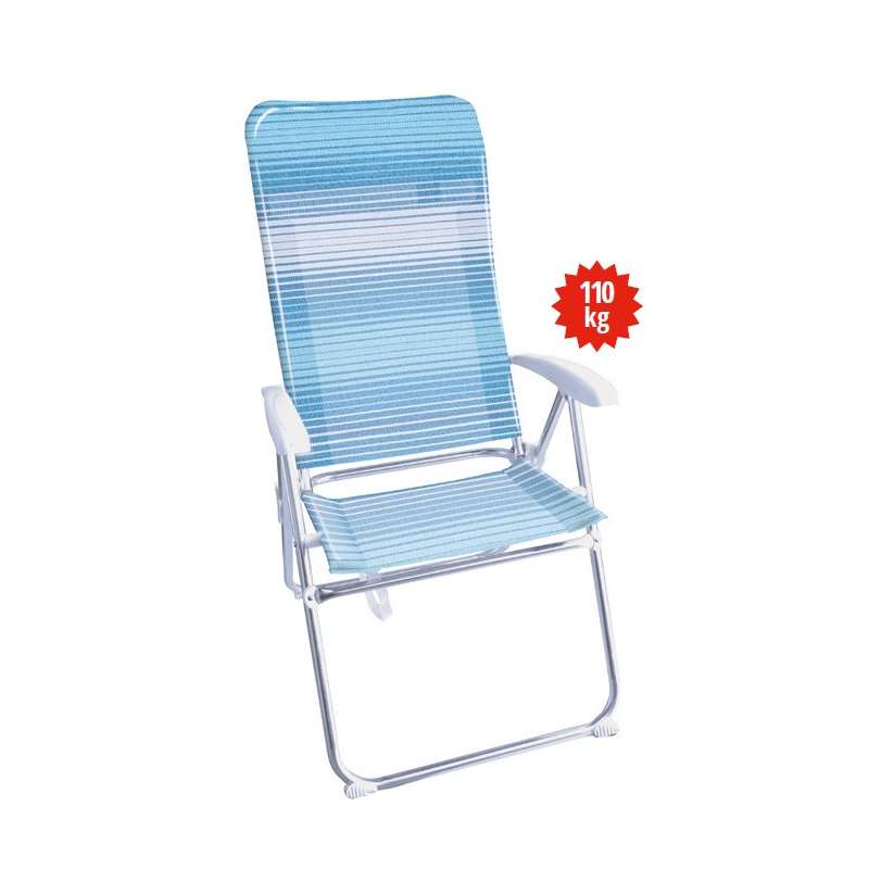 Fauteuil de camping haut en aluminium, dossier haut, 5 positions, tissu Textilène thermosoudé, avec poignées