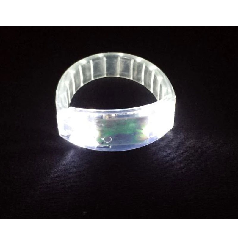 Bracelet plat lumineux avec 2 LEDs. 3 fonctions lumineuses par pressions successives (marche continue, clignotante rapide, et clignotante normale).