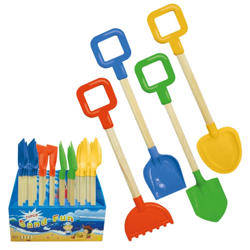 Display de pelles et râteaux avec manche an bois.