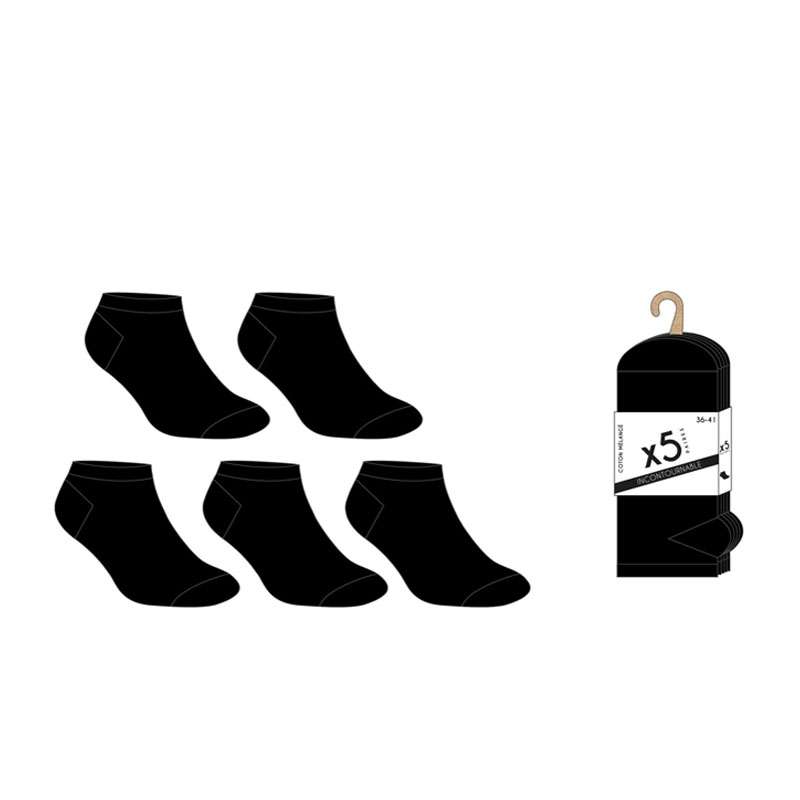5 paires de soquettes femme 36/41, couleur unie (noir x 5)