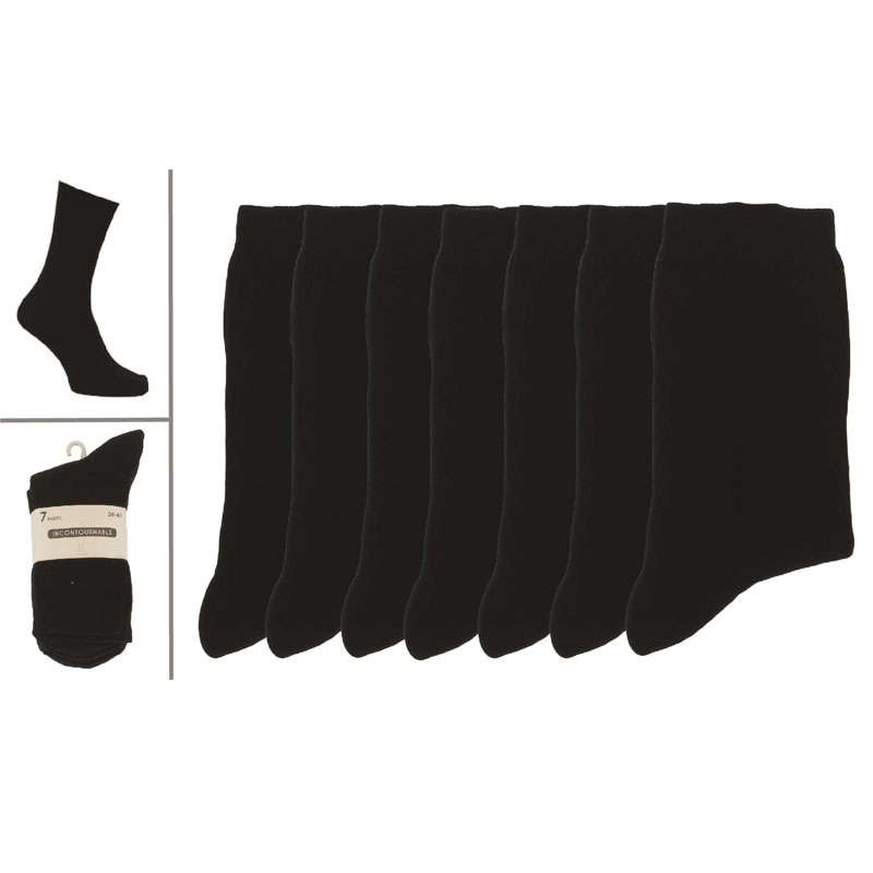 7 paires de chaussettes femme 36/41, couleur unie noir