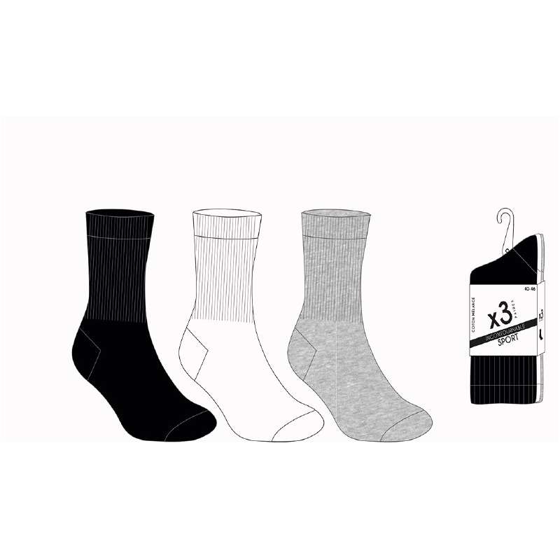 Chaussettes tennis unies, assortiment Noir, Blanc, Gris