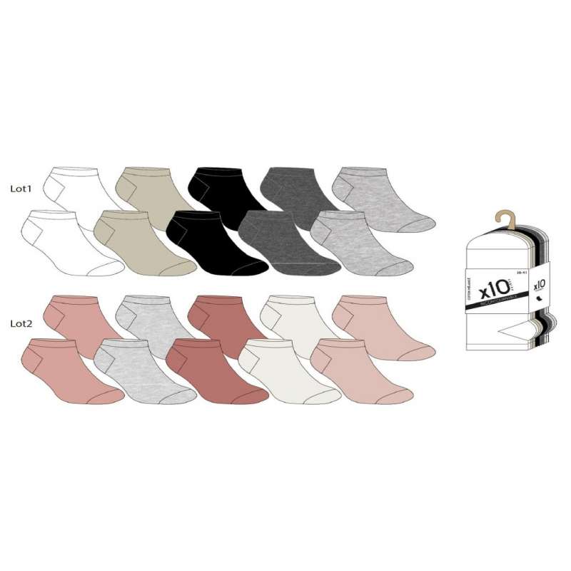 Lot de 10 paires de socquettes femme, assortiment de couleurs