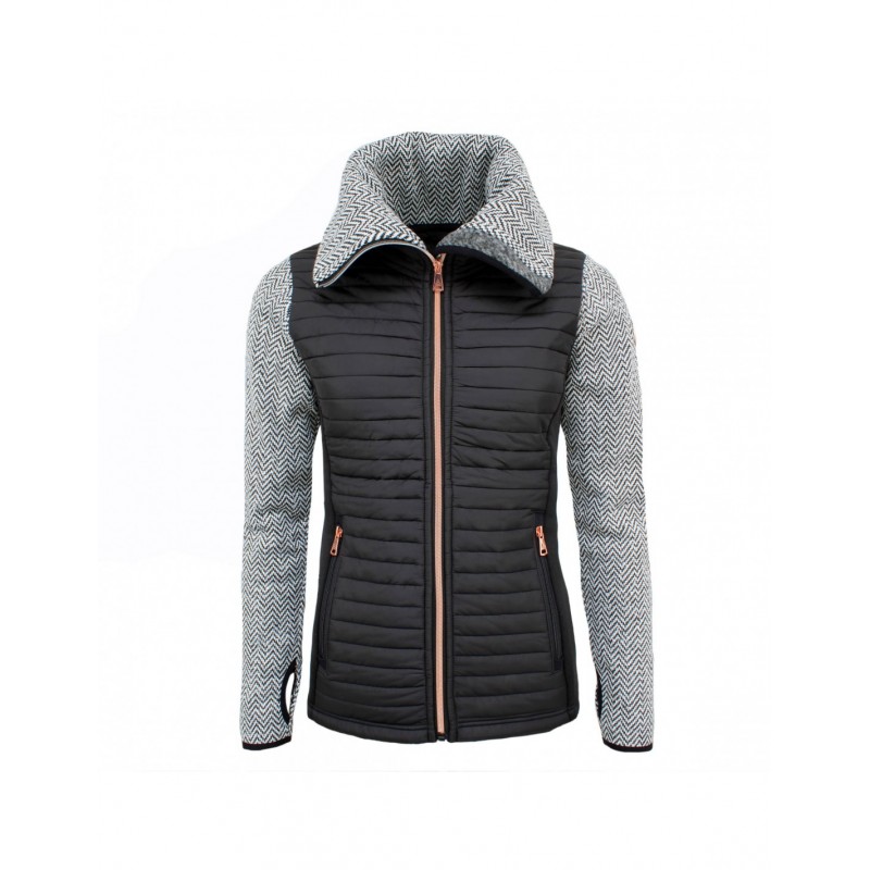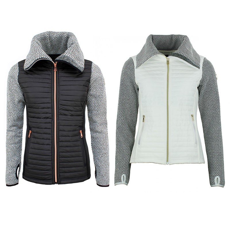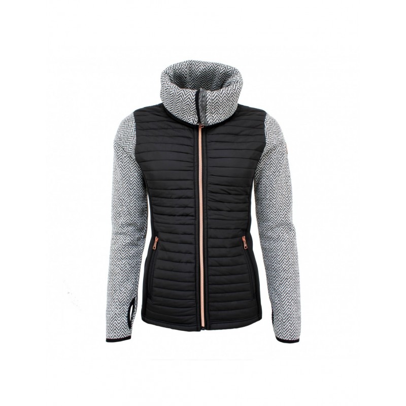 Blouson polaire femme 100% polyester avec empiècement matelassé 100% polyamide + empiècement 95% polyester / 5% élasthanne