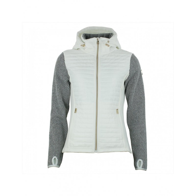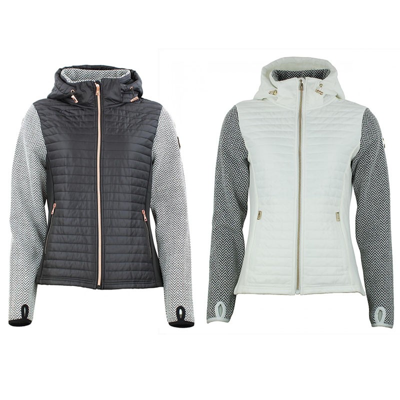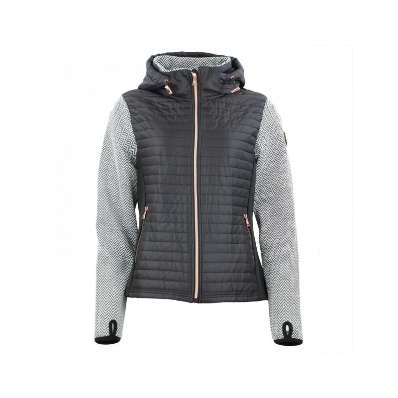 Blouson polaire femme 100% polyester avec empiècement matelassé 100% polyamide + empiècement 95% polyester / 5% élasthanne