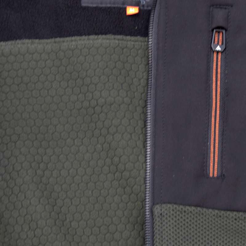 Blouson homme 100% polyester, tissu jacquard, empiècements softshell
