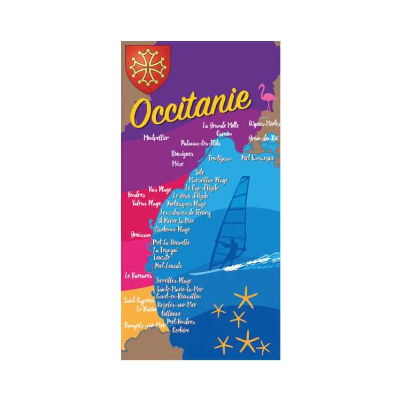 Serviette de plage microfibre 250 g/m², motif Occitanie.